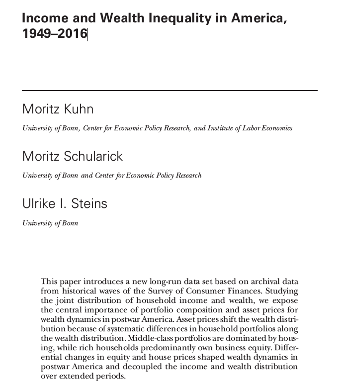 I recently read a 2020 article from the Journal of Political Economy, Income and Wealth Inequality in America, 1949–2016.