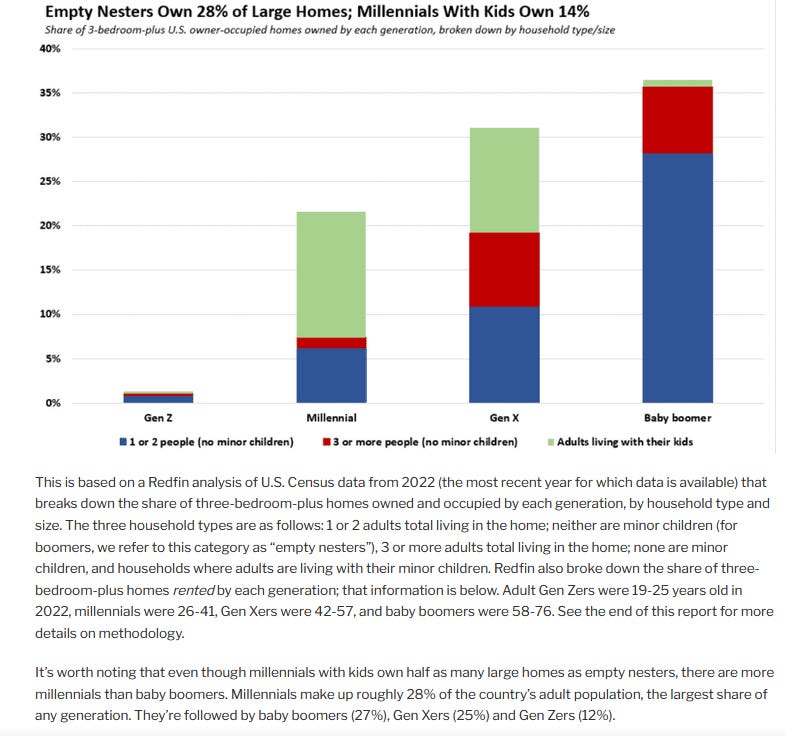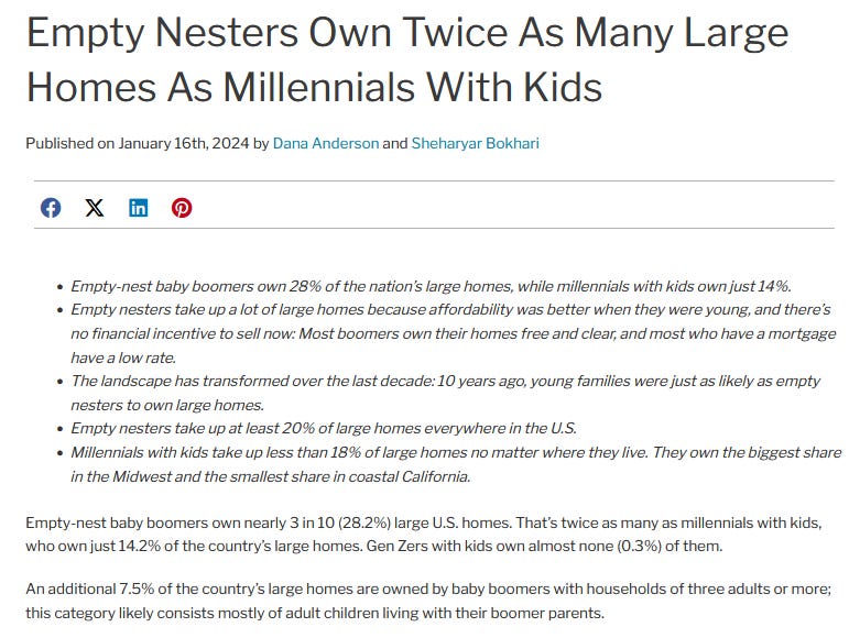 Twice as many empty nesters own big homes as Millennials with kids: