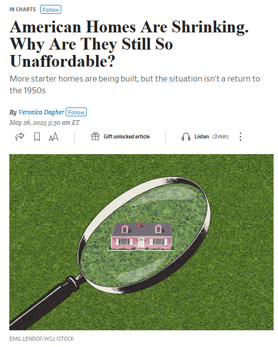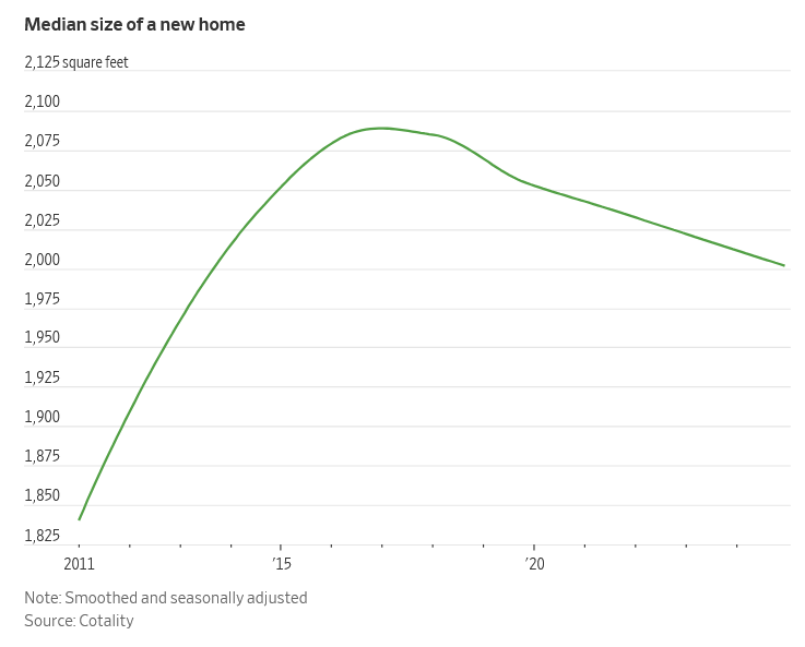 An interesting article from the WSJ last year, on a trend I hadn’t known about. Median home sizes have been shrinking for quite awhile now.
