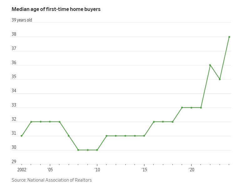 And so, unsurprisingly, the median age of a first-time home buyer has increased by about half a decade